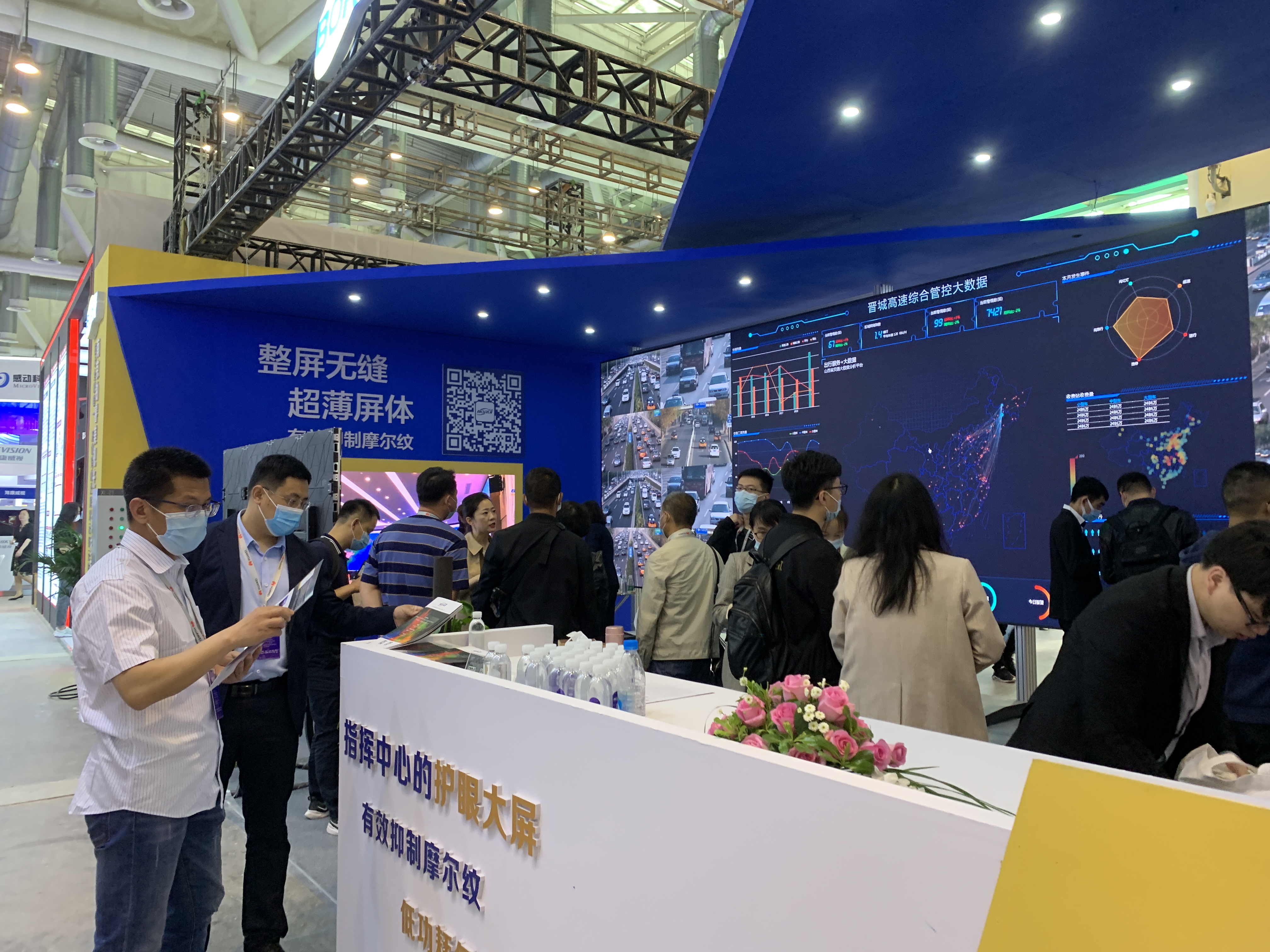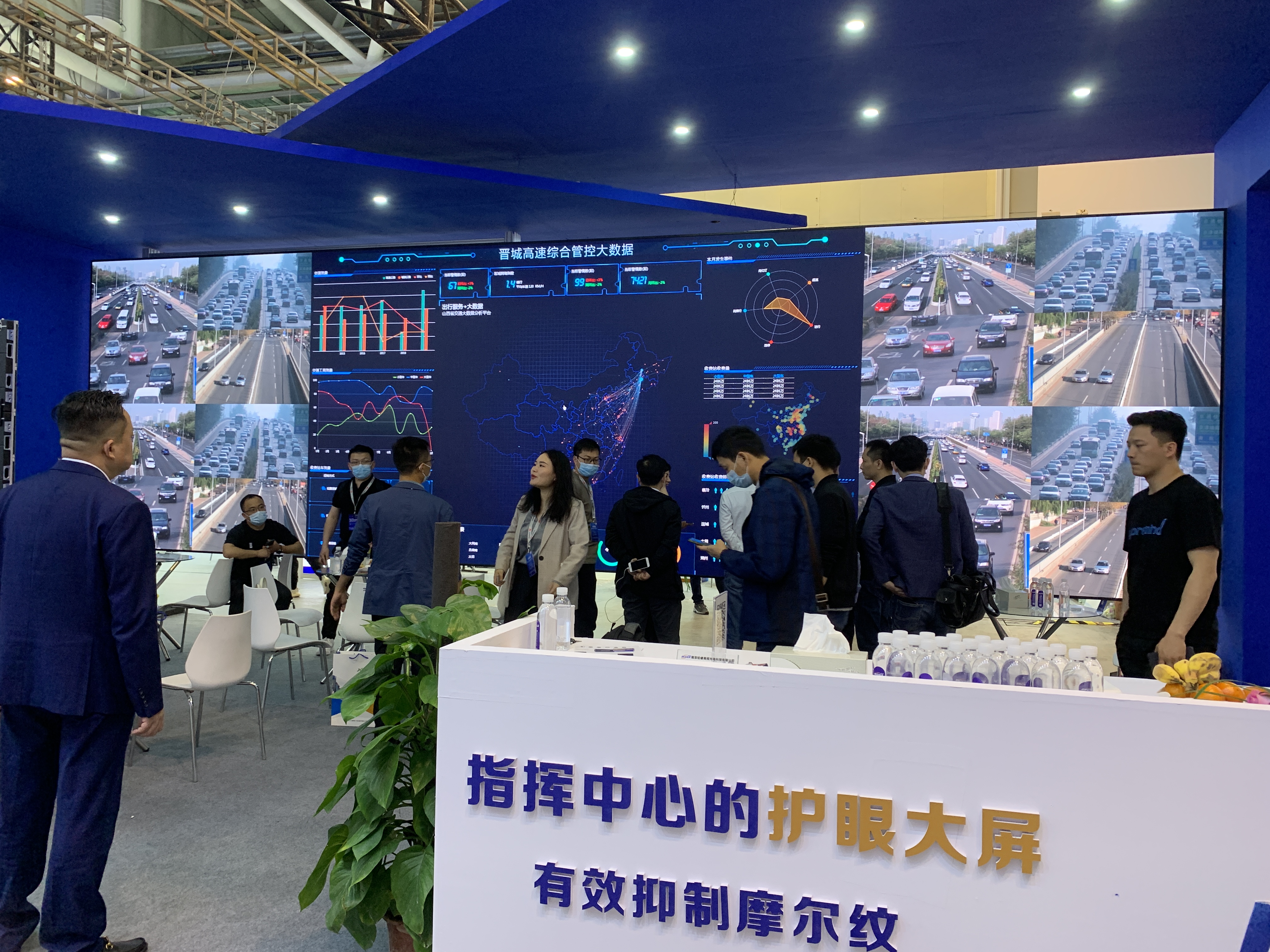本次展會上鉑睿光電不僅展出了自己一系列新產(chǎn)品,更有一塊閃耀展會現(xiàn)場的鉑金大屏對高速公路信息化平臺做出了精細又舒適的內(nèi)容展示。