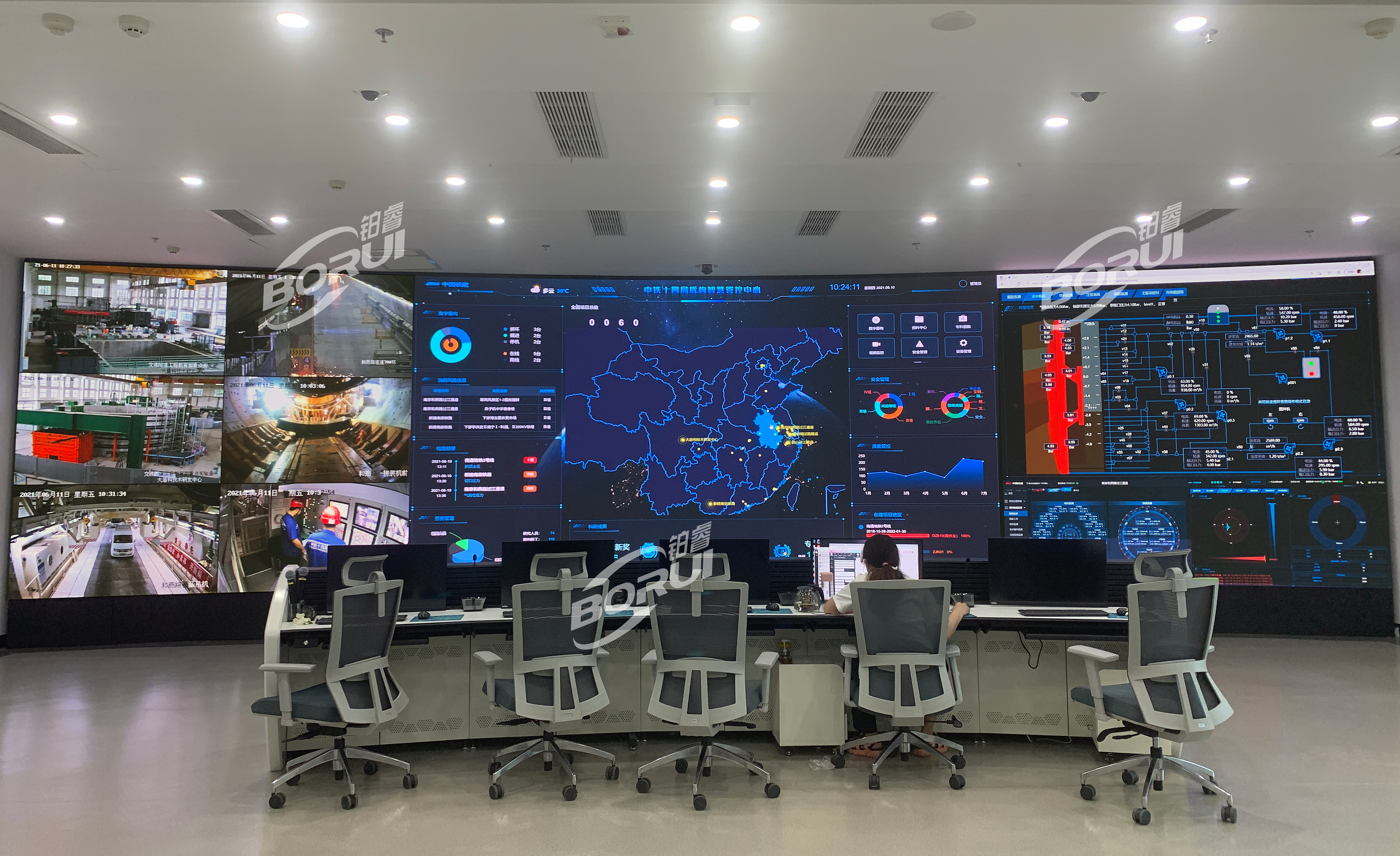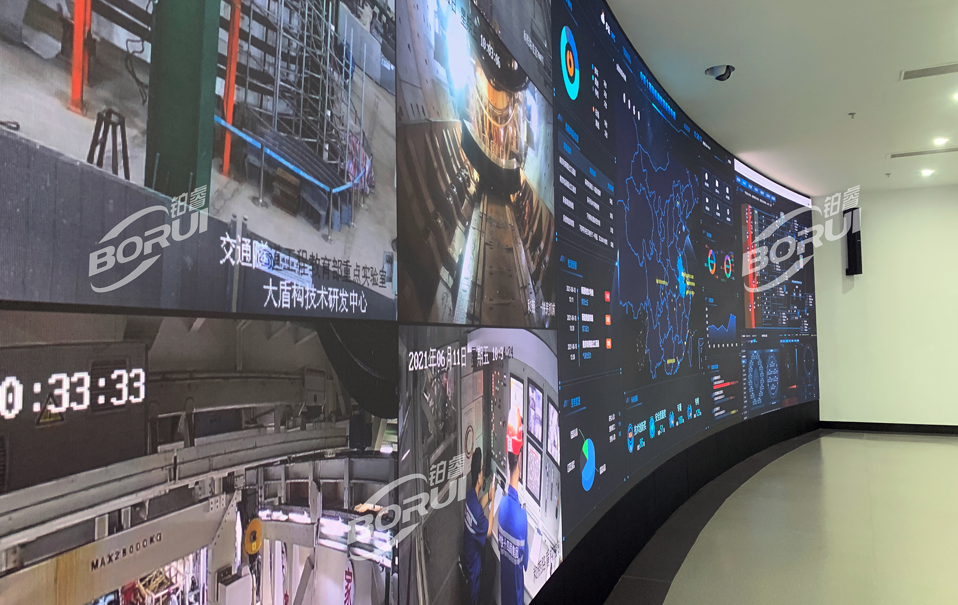 大盾構公司始終秉承堅持掌握核心技術、制定核心標準的原則,選擇了在屏顯技術上不斷突破革新的BORUI玻顯投影?作為顯示媒介,從而更好地對公司項目施工進度、安全質(zhì)量、施工風險進行綜合管控。